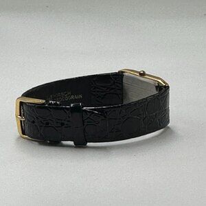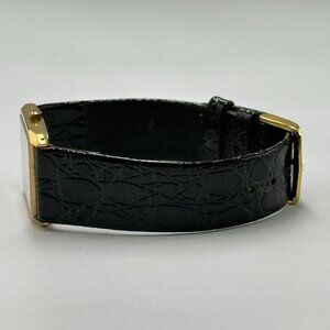 Vintage Jaques Prevard Tank Watch Women Gold Black Embossed Leather Band 8.5"