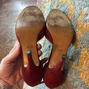 Vintage Jarolini Red Suede Heels with Gold Chain Detail