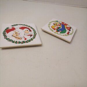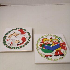 Vintage Jasco 1981 Ceramic Tile Trivet Coaster Christmas Santa Carolers Lot of 2
