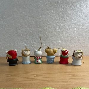 Vintage Jasco Lil Chimers Lot 6 Christmas Bell Ornaments Hand Painted Porcelain