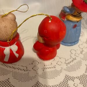 Vintage Jasco Set of 4 Porcelain Ornaments Bear Dog Drummer Girl Christmas