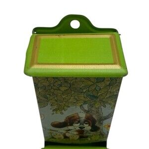 Vintage Jasco Tin Match Box Holder Anthropomorphic Dog Gardening Decor Hong Kong