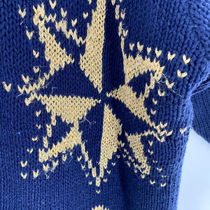 Vintage Jason Maxwell Compass Cardigan Sweater Sz M Blue Gold V-Neck Nautical