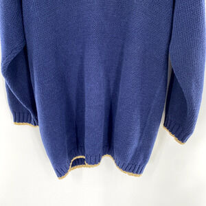 Vintage Jason Maxwell Compass Cardigan Sweater Sz M Blue Gold V-Neck Longline Nautical