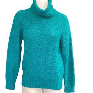 Description: Vintage Jason Maxwell Cowl Neck Sweater Bright Teal Textured Knit