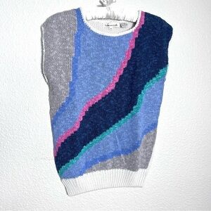 Vintage Jason Maxwell Linen Blend Knit Sleeveless Sweater Pastels Size Medium