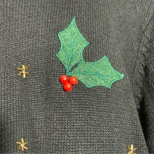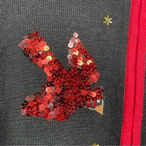 This vintage Jason Maxwell sweater is a must-have for any fashion-forward woman. The cardigan style sweater features a full zip and a collared neckline, making it perfect for any occasion, whether it's a casual day out or a party. The sweater is made of a tight-knit ramie and cotton fabric, which gives it a comfortable and durable feel. The sweater's multicolor design is perfect for the winter and fall seasons, with its solid pattern and quilted, beaded, and sequin accents. The sweater is also personalized with a bird character and a Christmas tree design, making it a great addition to any holiday wardrobe. The sweater is a size large and is hand wash only.