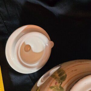 Vintage Jay Import Co. Ceramic Teapot With Fruit Design & Lid Rustic Style Made