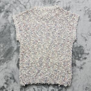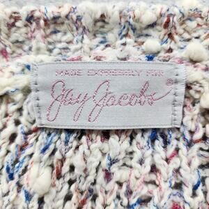 Vintage Jay Jacobs Sweater Womens Cream Multicolor Marled Popcorn Knit Sleeveless Cardigan Preppy Hippie Boho Grandmacore