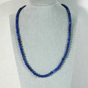 This could be a mix of lapis and sodalite? I see a little white in some stones and some matrix in others. It is a beautiful necklace. It is Jay King. see all photos for best description. Please message me if you know what kind of stone. Thanks