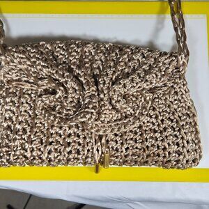 Beautiful vintage Jay by Sharif woven crochet shoulder bag in a soft beige/champagne tone.