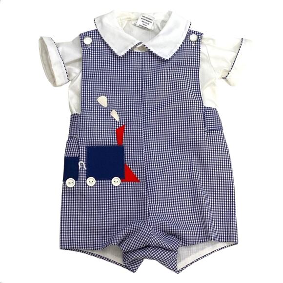 Vintage Jayne Copeland gingham train Jumper 12 moths Jon Jon