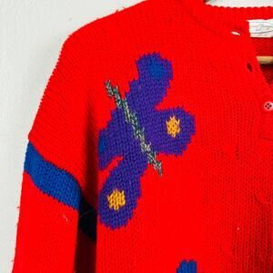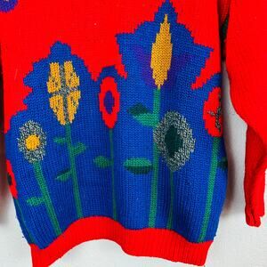 Vintage Jayson Younger Mid Mod Floral Print Sweater Long Sleeve Red - M