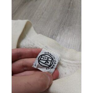 Pre-owned condition. Flaws noted in photos. Please view measurements as sweatshirt is bit shorter in length.