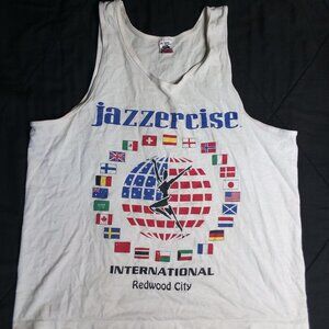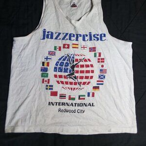 Vintage Jazzercize International Redwood City Tank Top - Made in USA - Size X-Large, Measures p2p=23" Length=25" - Excellent Condition, No Flaws - White Color Shirt