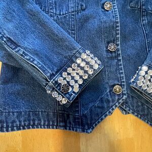 This one-of-a-kind vintage jean jacket is a true statement piece! Featuring stunning bedazzling with rhinestones and pearls, it adds a bold touch to any outfit. The perfect mix of classic denim with a glamorous twist, this jacket is sure to turn heads. Whether you're dressing up for a night out or adding some sparkle to your everyday look, this bedazzled jacket is the ultimate fashion find. Its timeless vintage style makes it ideal for any occasion!