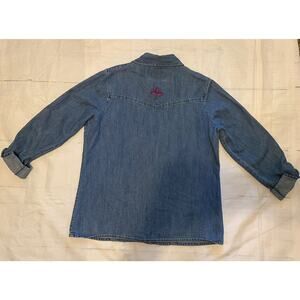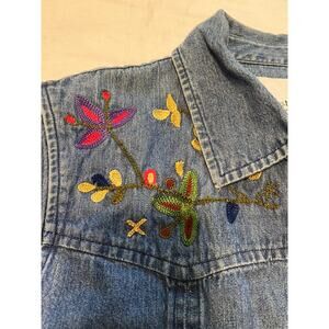 Vintage Jean Jacket Shirt Women's Large Denim Floral Embroidered Accent