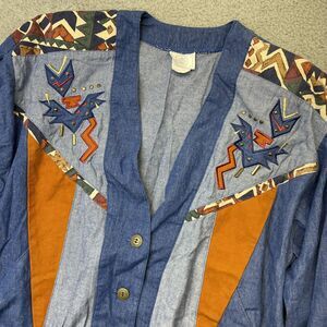 Vintage Jean Jacket Women Large Blue Studded Blue Jean Southwest Aztec 80s Rodeo