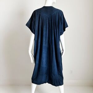 Chic vintage Jean Muir blue suede coat dress, likely from the late 1970s.