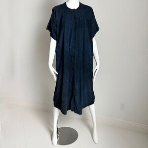 Vintage Jean Muir Blue Punched Suede Leather Coat Dress Rare England Sz 10