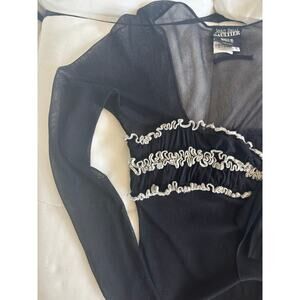 Vintage Jean Paul Gaultier Maille Femme x Fuzzi Sheer Ruffle Top – Black/Grey