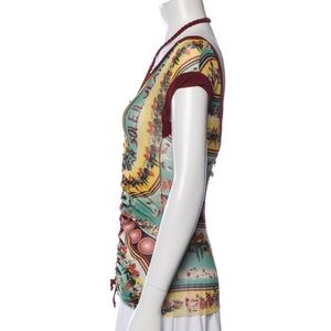 In excellent condition. Only worn once for pictures. Features cinching that allows you to wear worn cropped. Mesh material. Size L, but can also be worn for small-medium. I wear a size s/m in tops.