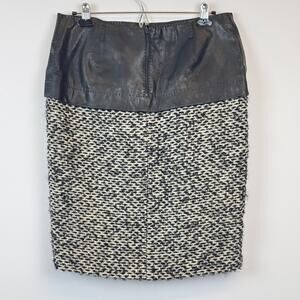Vintage Jean Paul Gaultier Wool Leather Skirt Size 12 Black White Knee Length