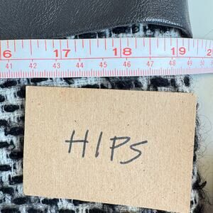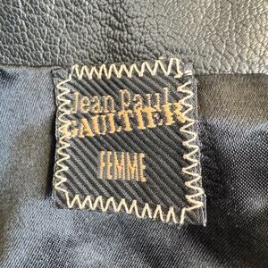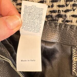 Fabulous Vintage (1980s?) Jean Paul Gaultier wool bouclé and Leather Skirt, Size 12. Made in Italy. Very good condition; the wool is "loopy" (Hard to describe but see photo #3). Labeled Size 12, but vintage sizing so please see photos for approximate measurements.