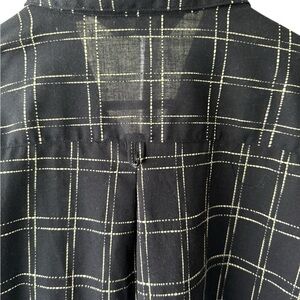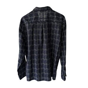 Vintage Jean Paul Germain Classic Navy Checkered Button-Down Shirt Size Large. Elevate your wardrobe with this classic navy checkered button-down shirt. Perfect for any occasion, it features a stylish design with a front pocket and button closure.