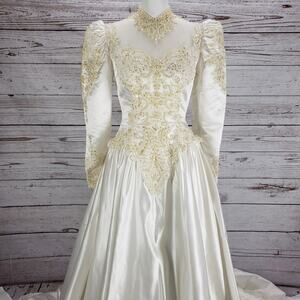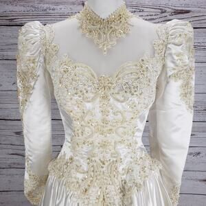 Vintage Jean Phoenix by Shirlee Women's Ivory Puff Sleeve Wedding Gown Size 10