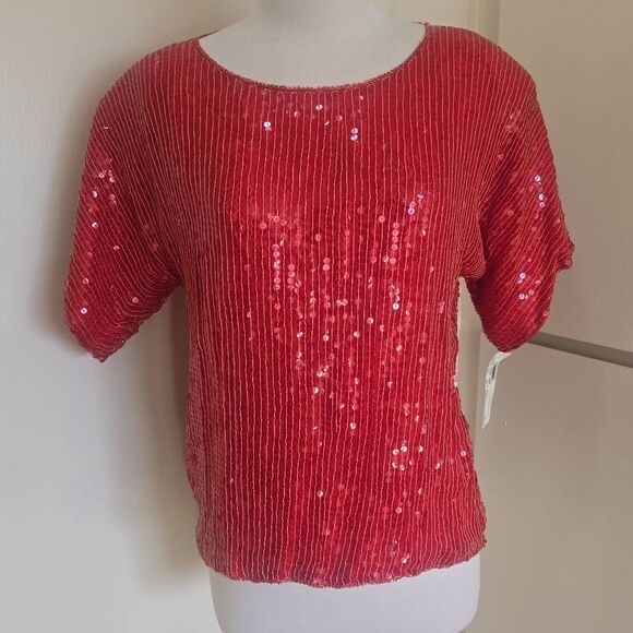 Vintage Jean for Joseph le Bon 100% Silk Red Sequin Short Slv. Blouse, NWT, S
