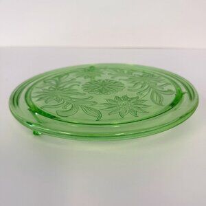 Vintage Jeanette Green Depression Daisy Pattern 10" Glass Cake Stand