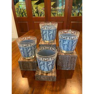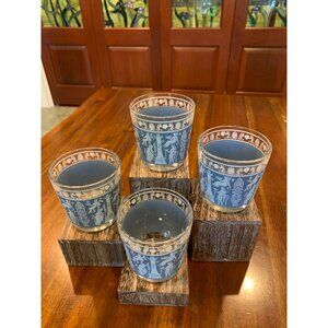 Vintage Jeanette Hellenic Jasperware Lowball Scotch Glasses.