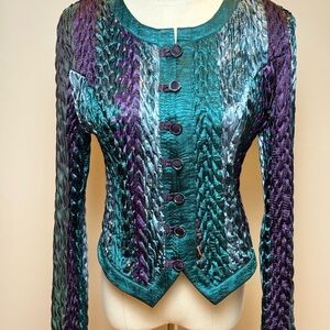Vintage Jeanne Marc Braided Texture, Teal & Purple Jacket Size Small