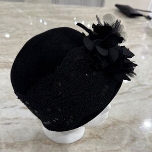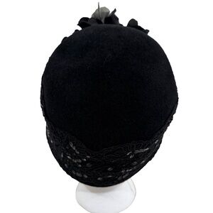 Experience the elegance of the 1920s with this vintage Jeanne Marie by Kathy Jeanne cloche hat. Crafted from high-quality wool felt, it offers both warmth and style, perfect for the woman who appreciates retro fashion. The classic black color serves as a versatile base, adorned with delicate flowers, lace, and sequins that add a touch of glamour and charm. Designed to fit most with its one-size-fits-all approach, this cloche is a testament to the timeless appeal of floral themes and the sophisticated style of the roaring twenties. Whether you're completing a vintage-inspired outfit or simply adding a touch of vintage flair to your everyday look, this hat is sure to turn heads and become a cherished piece in any wardrobe. Hat is in excellent, pre-loved condition!