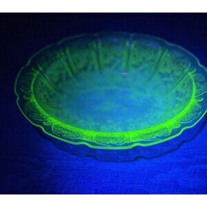 Featured is a wonderful Vaseline/Uranium glass Jeannette Cherry Blossom Green Vegetable Bowl. It is in excellent condition, free from any chips or cracks. GLOWS! See pictures!