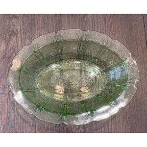 Vintage Jeannette CHERRY BLOSSOM Green Vegetable Bowl Uranium/Vaseline Glass