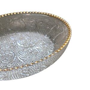Vintage Jeannette Harp Glass Coaster with Gold Beaded Trim Single Retro