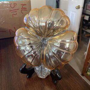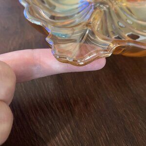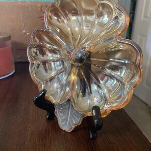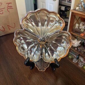 Vintage Jeannette Marigold Iridescent Carnival Glass "Doric" Clover Shaped Dish