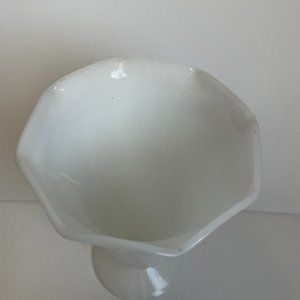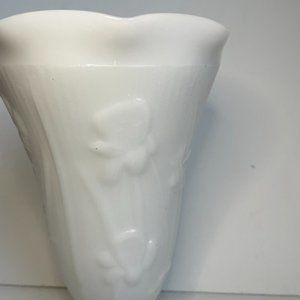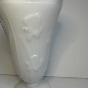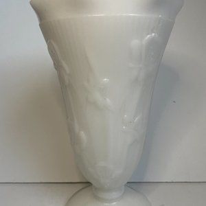 Vintage Jeannette Milk Glass Herringbone Irises Pattern Footed Vase 9” Great
