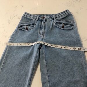 The brand is known for its exceptional quality and style, and this pair of jeans is no exception. It is a size 4 and will fit comfortably on any woman who loves fashion. Don't miss out on the chance to own a piece of vintage clothing that is both stylish and comfortable.