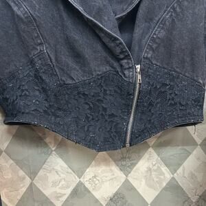 Vintage Jeantonic Sportswear Black Denim Moto Jacket with Lace Panels 90s