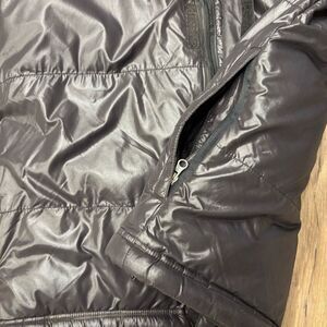 Gray/black. Top/bottom zip with Velcro closures. Front slash zip pockets. Drawstring waist. Velcro cuffs.