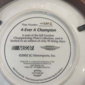 Vintage Jeff Gordon “4-Ever A Champion” collector plate, 9" detachable Frame