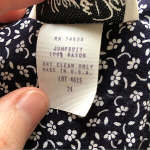 Vintage Jeffrey & Dara by Linda Hutley Floral Navy Blue Jumpsuit.