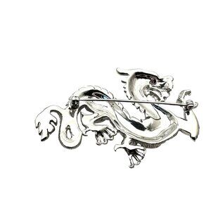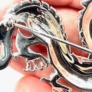 Beautifully crafted vintage Jenna Nicole sterling silver pin brooch featuring an intricate Chinese dragon design adorned with clear glass rhinestones. Perfect for collectors or as a unique accessory for any outfit.