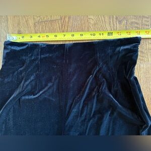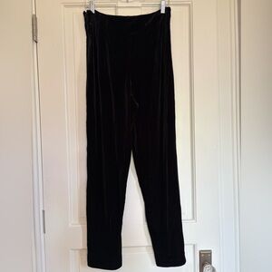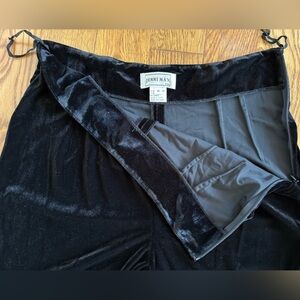 Vintage Jenni Max soft velvet pants. High waist with a side zip for a snug, comfortable fit. The fabric contains spandex so there is some stretch. Tapered legs add shape to the relaxed fit. Soft velvet is unlined but smooth on the inside.