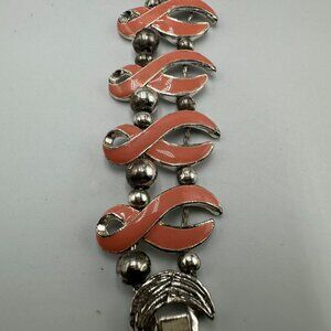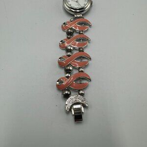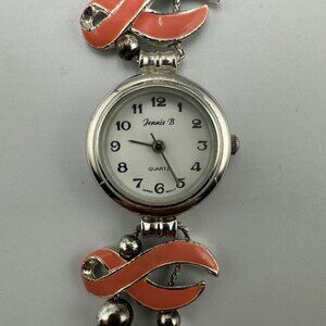 Vintage Jennie B Watch Women Silver Pink Ribbon Band Breast Cancer Awareness