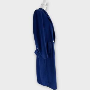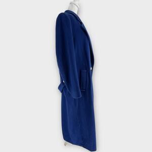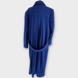 Vintage Jennifer Chase Royal Blue Long Wool Pea Trench Coat Pleated Back 14