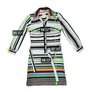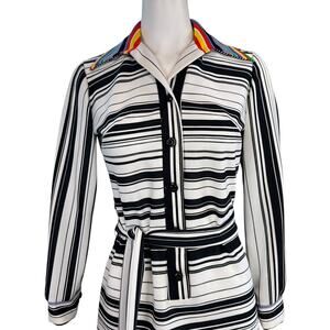 Vintage Jennifer Gee Dress 1970s Big Collar Striped Long Sleeve Belted Mod 8